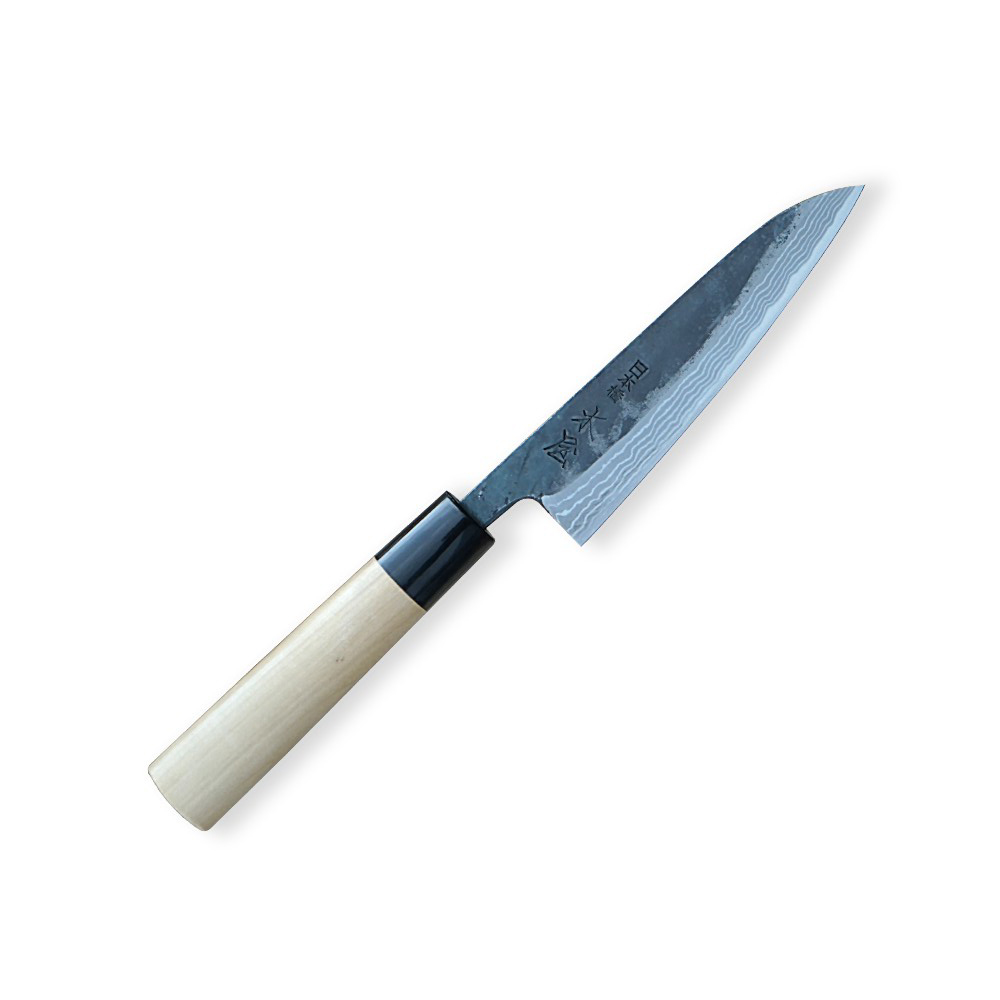 Jádro čepele je vyrobeno z damascénské oceli s tvrdostí 61±1 HRC, obklopené 66 vrstvami dvou druhů nerezové oceli. Toto vrstvení zajišťuje maximální houževnatost a odolnost. Surový vzor ručně kovaného damašku. Neuhlazený, živý povrch s výraznou kresbou vrstev oceli odhaluje skutečný charakter řemeslné výroby a dává každému noži jedinečnou identitu. Precizní zpracování zaručuje snadnou údržbu a dlouhotrvající ostrost, kterou lze snadno obnovit broušením na vodních kamenech.