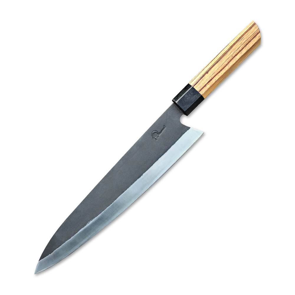 Vynikající švédská ocel Sandvik 14C28N po zakalení ve vakuové peci se může pochlubit tvrdostí okolo 59 HRC. Chlazení dusíkem zvyšuje tvrdost, pružnost a houževnatost už tak výjimečné čepele. Nože z této oceli se mimořádně hodí pro venkovní kuchyně a BBQ. Pro krájení a sekání zeleniny, masa a kostí je to klíčový nástroj bez kterého se už nikdy neobejdete. Budete chtít ukázat každé návštěvě jaký kus překrásného a zářivého železa se skrývá ve Vaší kuchyni!